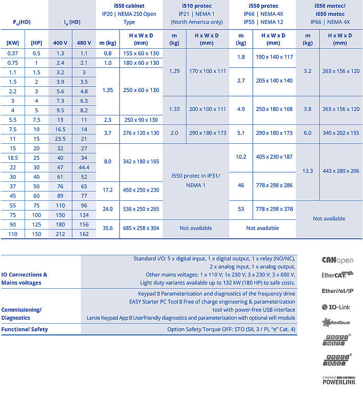 • Flexible portfolio: economical solutions with i550 frequency drives or i950 servo drives for performant high-end solutions