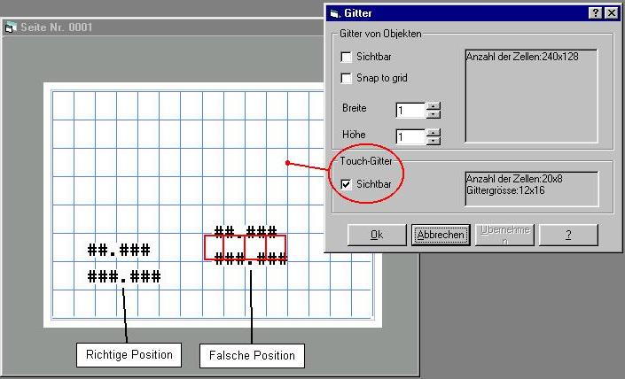 Über das Menü des HMI-Designers Ändern-Raster lässt sich das Touch-Gitter sichtbar schalten. Die Touch-Keys bzw. Felder können auf einfache Weise an diesem Gitter ausgerichtet werden.