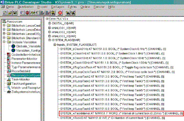 SYSTEM_wTaskInterval AT %IW151.7: WORD; (*Interval of current task (0.25 ms) *) [CHANNEL (I)]