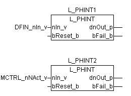 Beispiel: In einer 1 ms-Task wird der Positionswert des L_PHINT (dnOut_p) mit größer Genauigkeit angezeigt (Auflösung auf 1 Inkrement). In einer 2ms-Task würde die Auflösung des Signalausganges L_PHINT.dnOut_p nur noch auf 2 Inkremente genau erfolgen. In einer 10 ms-Task würde der Signalausgang L_PHINT.dnOut_p demnach auf 10 Inkremente genau aufgelöst werden. Entsprechend verschlechtert sich die Auflösung der L_PHINT-Integratoren bei größeren Taskzykluszeiten weiter.