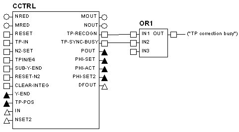 Soll zuverlässig erkannt werden, wann eine Touch-Probe-Korrektur erfolgt, so kann über die unten beispielhaft für den FB CCTRL aufgeführte Funktionsblockverschaltung ein entsprechendes Signal gebildet werden. Das Verschaltungsbeispiel gilt sinngemäß auch für den CDATA-Funktionsblock.