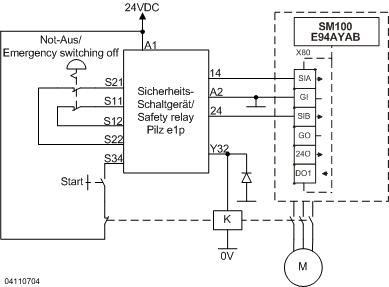 9400 mit SM100 - Sicher abgeschaltetes Moment mit elektronischem Sicherheits-Schaltgerät und Motorschütz - Performance Level e