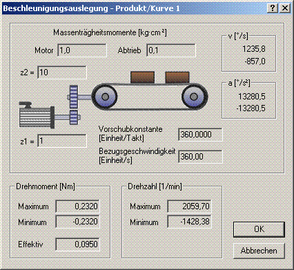 Der Dialog Beschleunigungsauslegung wird angezeigt.