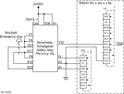8400 mit SU100 - Sicherer Stopp 1 mit elektronischem Sicherheits-Schaltgerät - Performance Level e