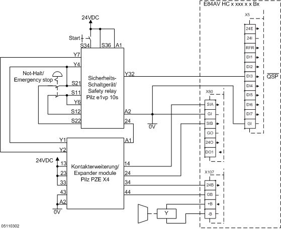 8400 mit SU100 - Sicherer Stopp 1 mit elektronischem Sicherheits-Schaltgerät und sicherer Bremsenansteuerung - Performance Level e