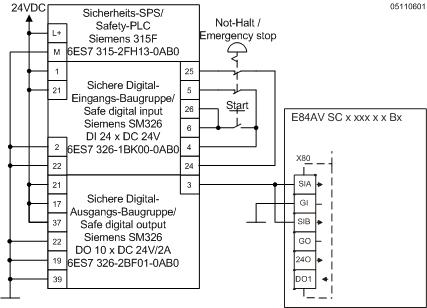 8400 mit SU100 - Sicher abgeschaltetes Moment mit Sicherheits-SPS - Performance Level e