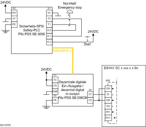 8400 mit SU100 - Sicher abgeschaltetes Moment mit P/M-schaltender Sicherheits-SPS - Performance Level e