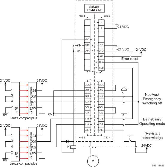 9400 mit SM301 - Sicher abgeschaltetes Moment und weitere Funktionen mit Motorschütz - Performance Level e