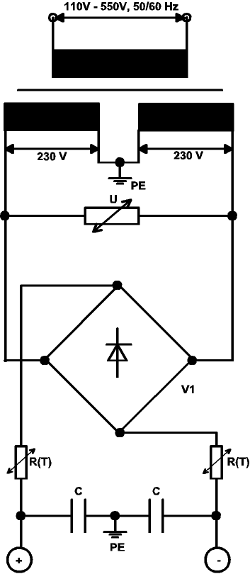 1. Trenntrafo: Prim. 1x 230 V oder aktuelle Spannung, Sek.2 x 230 V mit Mittelanzapfung (Leistung siehe Tabelle unten)