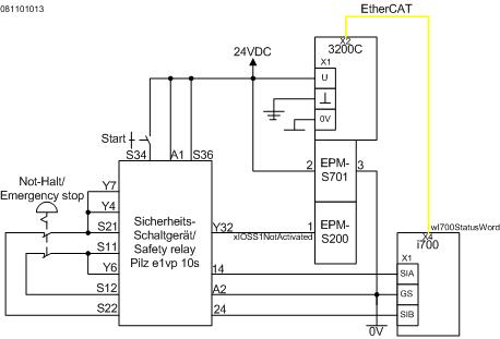 i700 mit Basic Safety - STO - Sicherer Stopp 1 mit elektronischem Sicherheits-Schaltgerät - Performance Level e