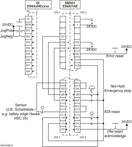 9400 mit SM301 - Sicher abgeschaltetes Moment und sichere Bewegungsrichtung bei elektrisch betätigter Tür - Performance Level d