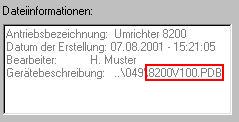 Der Stand der Gerätebeschreibung, mit dem eine Parametersatzdatei erstellt worden ist, kann beim Laden im Dateiauswahlfenster kontrolliert werden:
