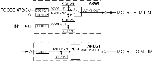 - da an ASW1-IN2 keine Signalquelle angeknüpft ist, wird reglerintern automatisch 0 % als Wert ausgewählt