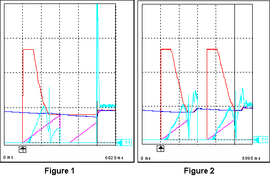 Abbildung: Fehlerhafter (Figure 1) und korrekter (Figure 2) Fangvorgang, wenn kurzzeitig Reglersperre in der Synchronisierungsphase gesetzt wird