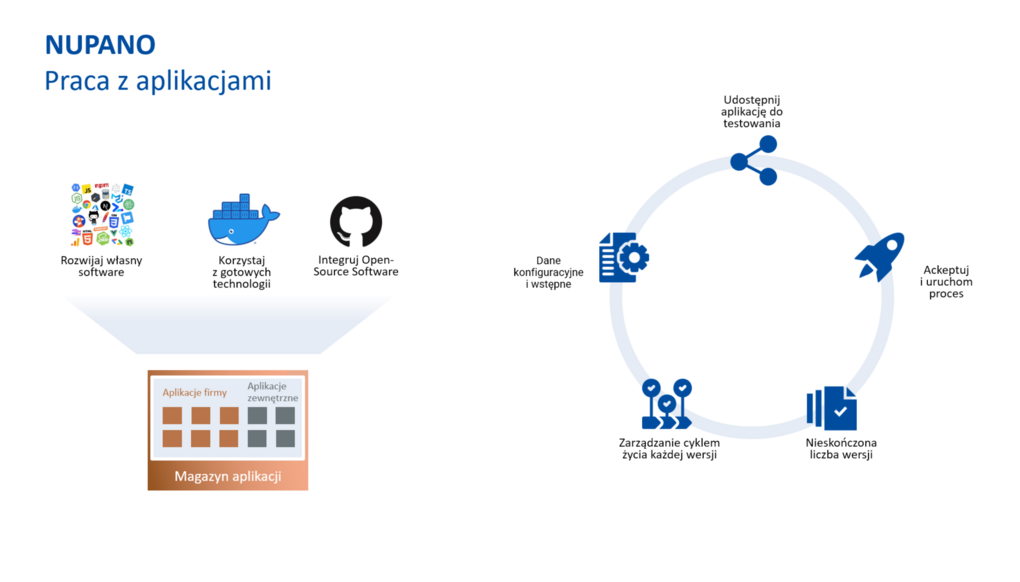 Annekatrin Konermann: W skrócie Nupano jest platformą, na której przechowywany jest otwarty, elastyczny zbiór parametryzowalnych i konfigurowalnych komponentów oprogramowania. Stąd mogą być one łączone w celu wytworzenia indywidualnego, całościowego rozwiązania programowego nawet bez udziału ekspertów IT. W obecnej produkcji maszyn seryjnych, jedna maszyna rzadko jest podobna do drugiej. W rzeczywistości regułą jest indywidualna konfiguracja. Nupano zapewnia ogromną przewagę w zakresie specyficznej dla maszyny konfiguracji IT i w ten sposób optymalizuje produktywność w dłuższej perspektywie. Można nawet posunąć się do stwierdzenia, że Nupano przeciwdziała niedoborowi umiejętności, ponieważ użytkownicy nie potrzebują specyficznych umiejętności IT. Co więcej, producenci mogą łatwo wyposażyć maszyny w nowe usługi IT lub automatycznie aktualizować istniejące przez cały okres użytkowania i w dowolnym momencie za pomocą Nupano.