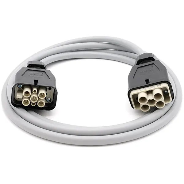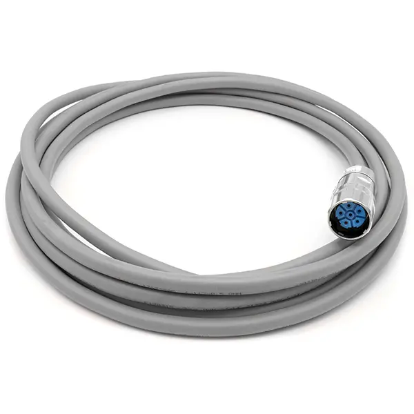Es stehen Netz-, Motor-, Rückführungs-, Lüfter- und Kommunikationsleitungen zur Verfügung. Je nach Einsatzfall sind die Leitungen mit den marktüblichen Steckverbindern ausgerüstet, so dass eine Integration in die Peripherie der Maschine ganz einfach möglich ist.