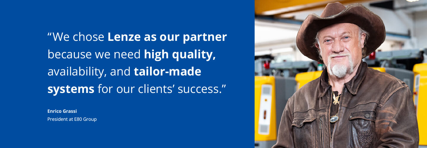 “We chose Lenze as our partner because we need high quality, availability, and above all, flexibility to develop tailor-made systems for our clients’ success,“ says Enrico Grassi.