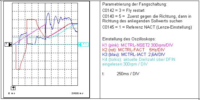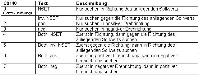 Die Lenze-Einstellung (C0140 = 0) beinhaltet das Fangen ausschließlich in Richtung des anliegenden Drehzahlsollwerts und ist damit kompatibel zu den vorherigen Softwareständen.