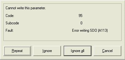 • GDC with the 'current' device description '93EVV710.PDB' (0.37 ... 90 kW) and '93GLEVV700.PDB' (110 ... 400 kW): The basic device recognises that a device description '93EVV710.PDB' (0.37 ... 90 kW) and '93GLEVV700.PDB' (110 ... 400 kW) is used. If the user had not changed code C0095 the value will be transferred without problems. If the value deviates from the value calculated the message mentioned is generated while the parameters are transferred (see screenshot at the end of this article).
