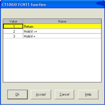 Der Funktionsblock FCNT1 wurde um einen Modus C1100/3 = 3 = '|Zählerstand|=|FCNT1-CMP-VAL|' erweitert (siehe Grafik unten).