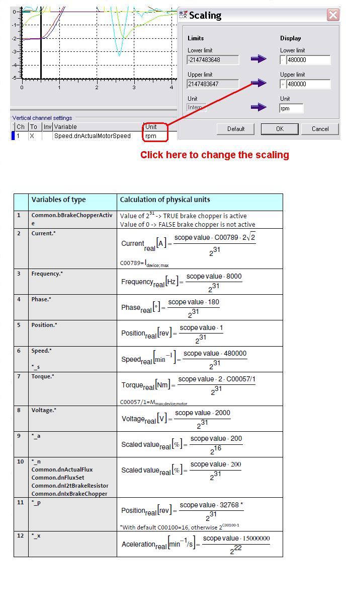 Question: How can exported «Engineer» oscilloscope data of variables of the Servo Drive 9400 be converted into physical units?