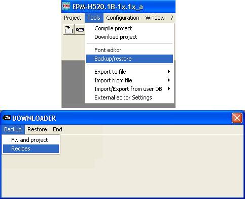 To replace, e. g., an H520 by an H521, your project can be easily converted by using the HMI Designer and then loaded into the H521. However, the recipe data contained in the H520 must be re-entered into the H521.