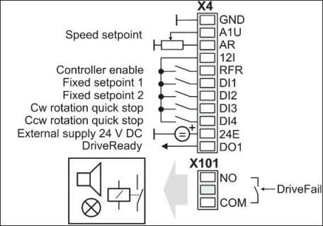 By means of the RLQ function a fail-safe reversal of the rotation direction can be implemented via two digital inputs.