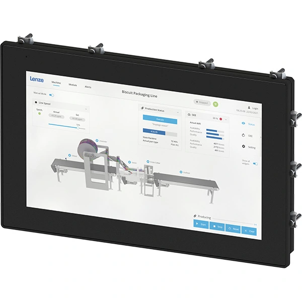Les visualisations esthétiques des machines dans une conception moderne, qui se commandent en outre de manière très intuitive, prennent de plus en plus d'ampleur. Avec le Web Panel v430 et notre offre basée sur le web, composée du logiciel d'élaboration de projet EASY UI Designer et du Runtime FAST UI sur les contrôleurs c430, c520 et c550, nous offrons une solution pour de telles supervisions.