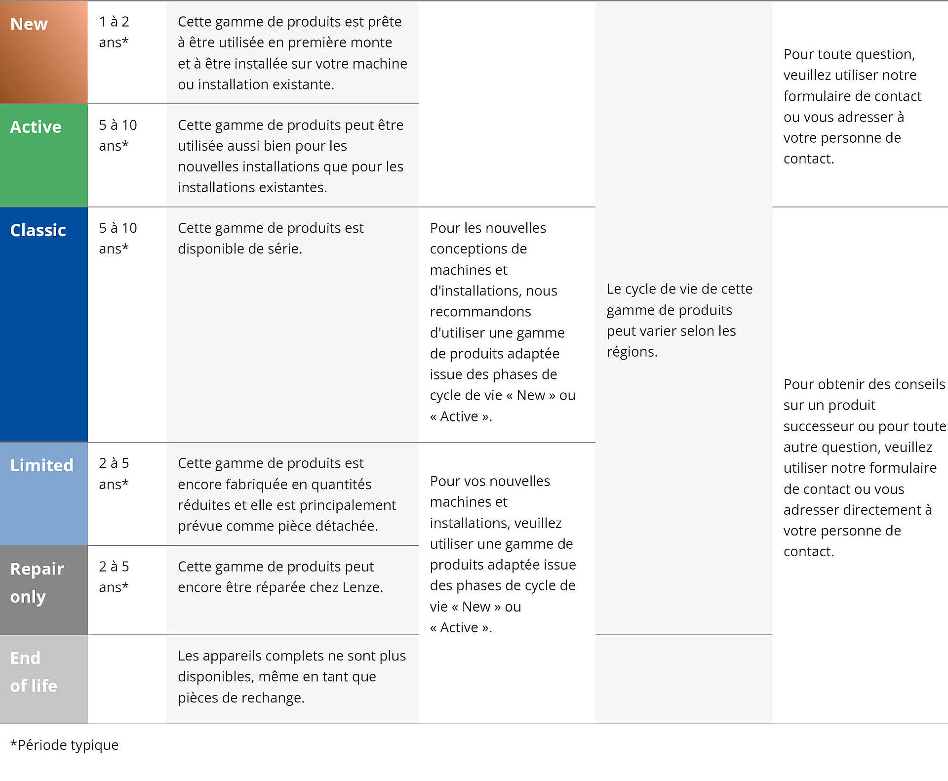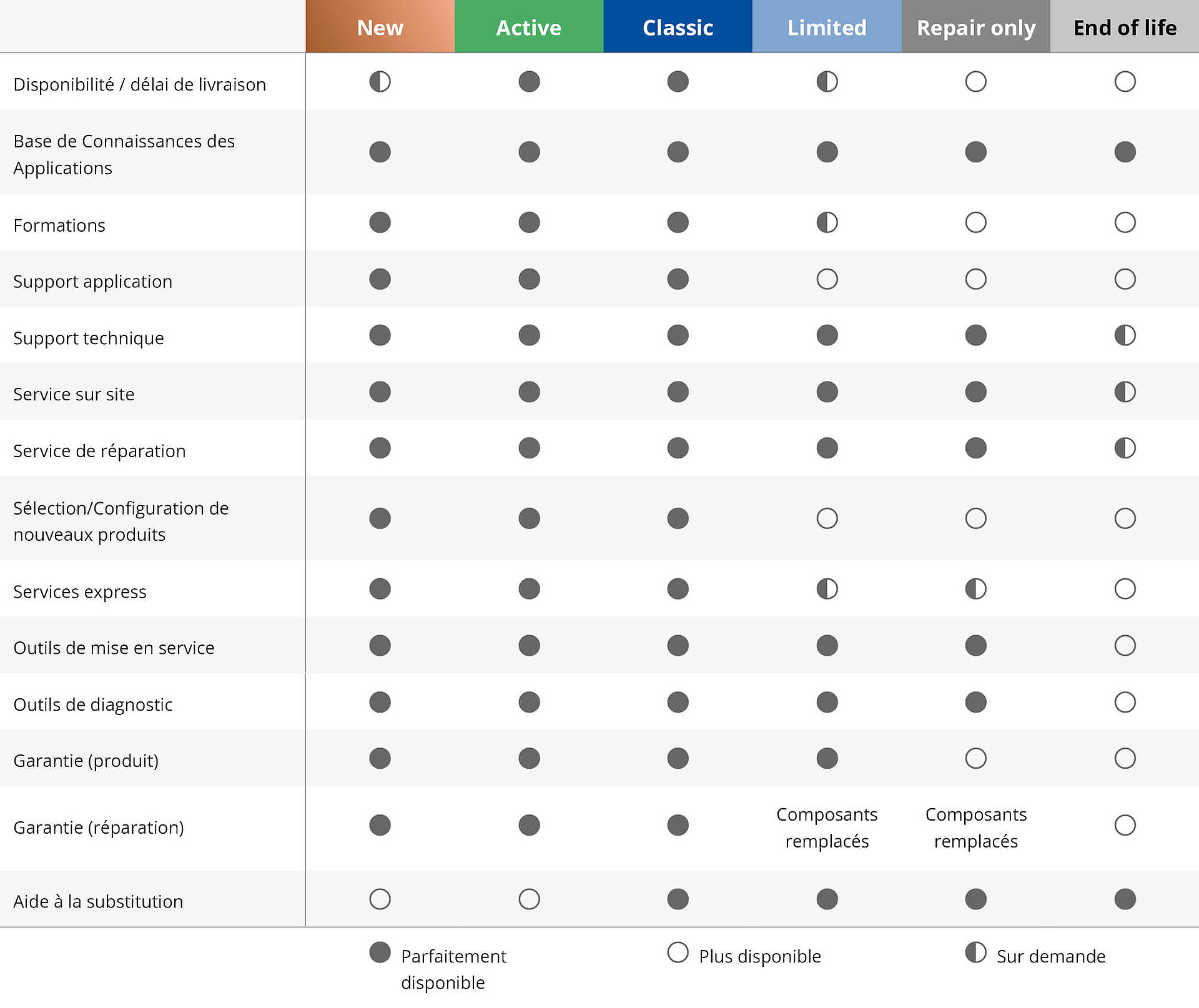Tout au long du cycle de vie, nous vous accompagnons avec des informations claires, des services dédiés et un support fiable, intégrés dans un cadre éprouvé. À chaque étape, vous bénéficiez d'une visibilité actualisée sur le statut de nos produits, grâce à une communication proactive. Et lorsque le moment d'évoluer vers une nouvelle génération arrive, nous vous guidons pas à pas pour assurer une transition structurée et maîtrisée vers le produit de remplacement.